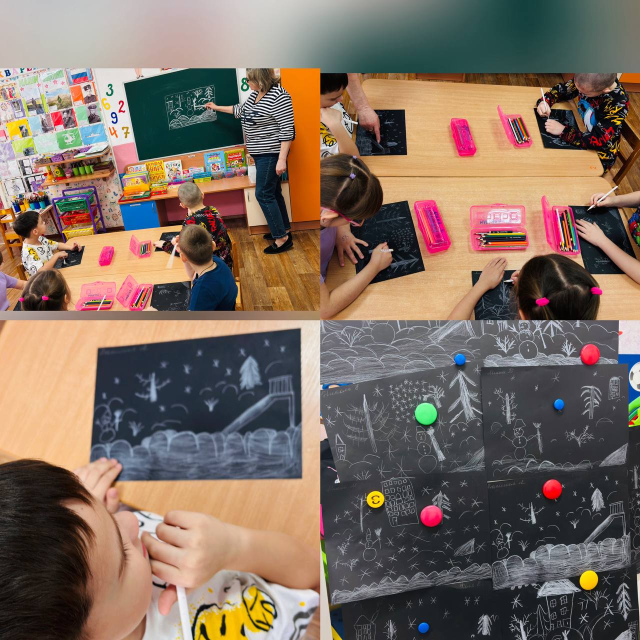 Сегодня ребята в группе «Ягодка» — создавали зимнюю «сказку» на бумаге. Дети с невероятным вдохновением: выводили причудливые узоры снежинок; раскрашивали пушистые сугробы; изображали сказочных снеговиков с морковными носами; создали целые зимние пейзажи, где деревья укутаны в серебристые одежды.